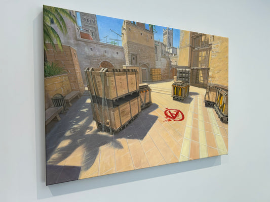 Oil Painting of Dust 2 from Counter-Strike 2, A Bomb Site - Original Painting
